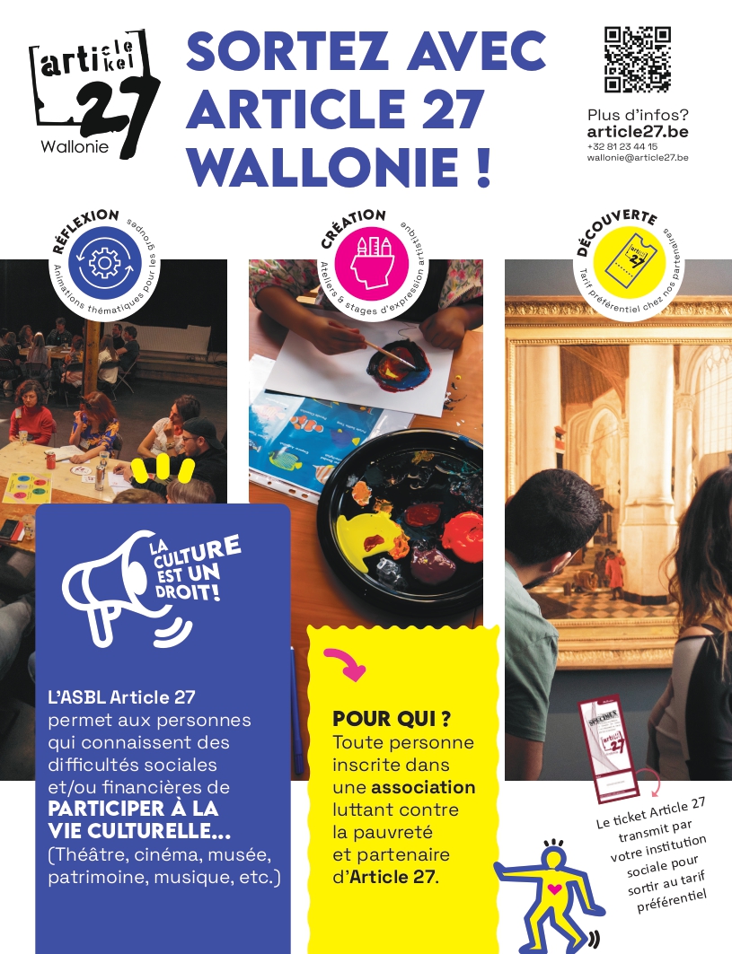 Enfin, notre partenariat avec Article 27 s’inscrit dans cette démarche. Il permet à toute personne disposant d’un ticket Article 27 de recevoir gratuitement la revue.